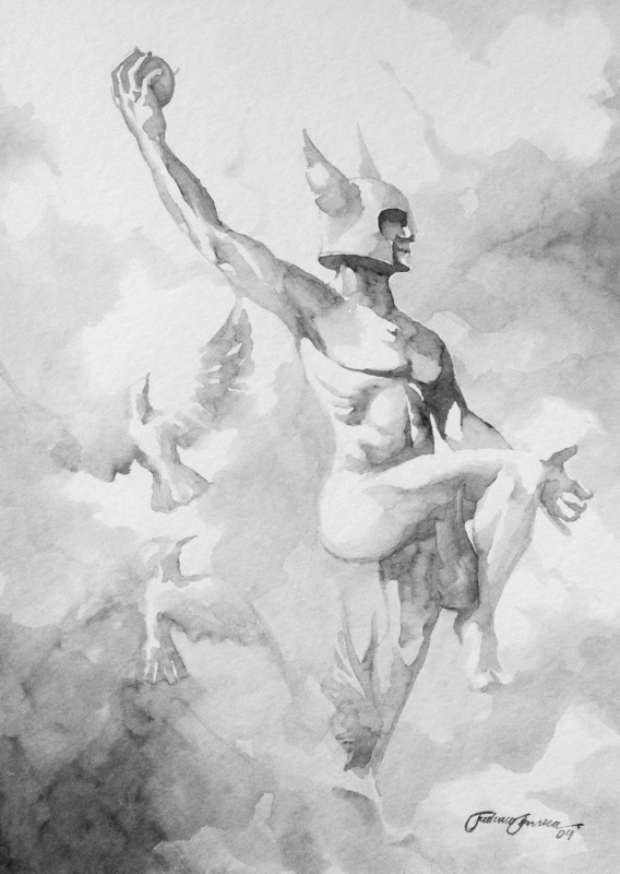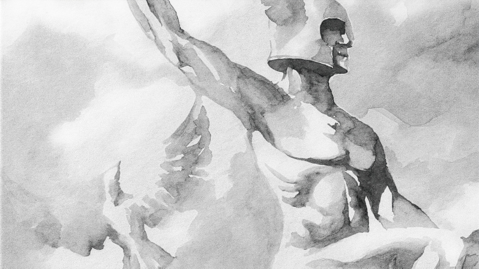 The use of gouache and ecoline in a grayscale palette allowed for a play of light and shadow reminiscent of classical sculpture, while preserving the fluid energy of contemporary linework.