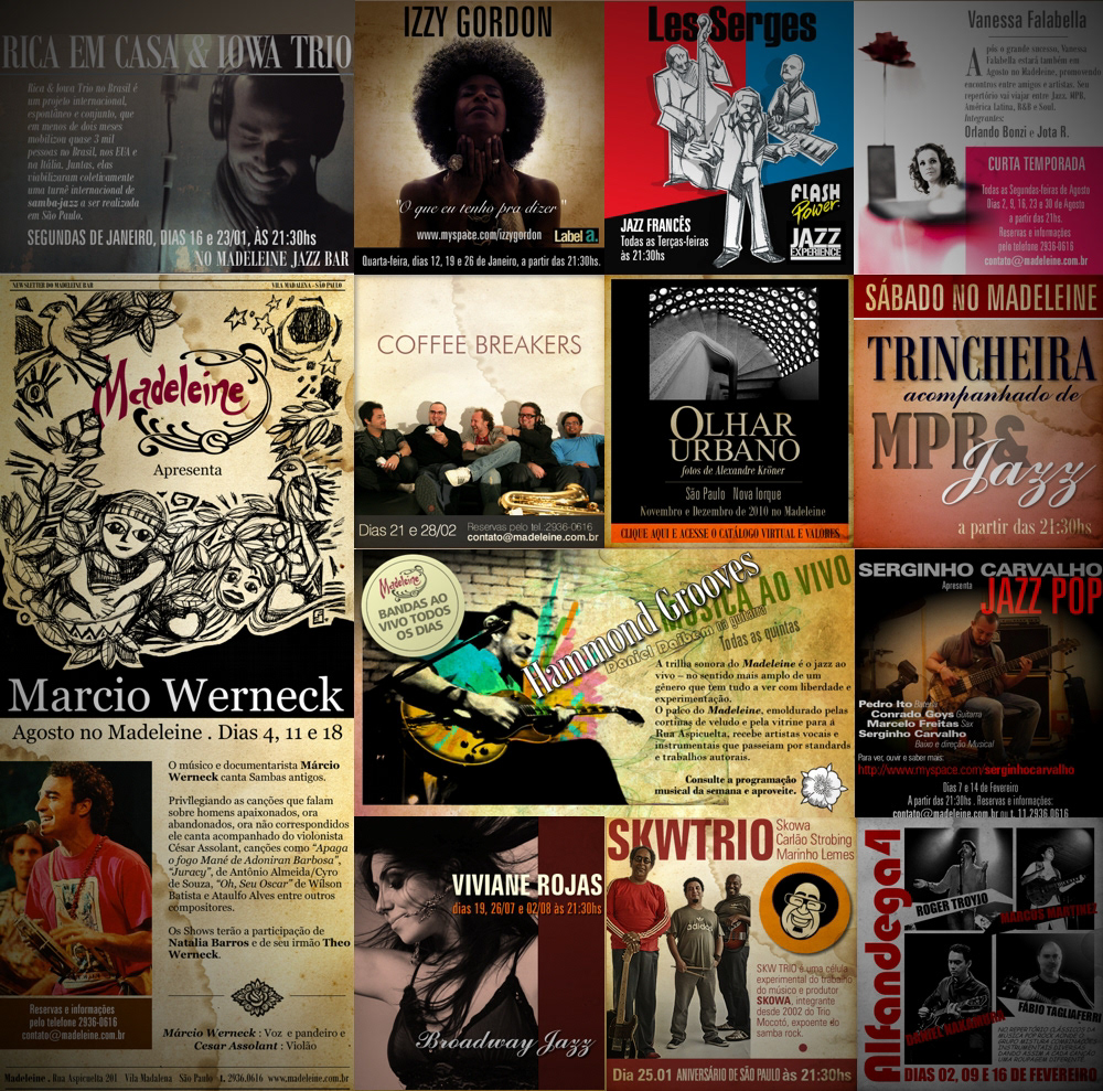 Flyers para shows do Madeleine Jazz Bar